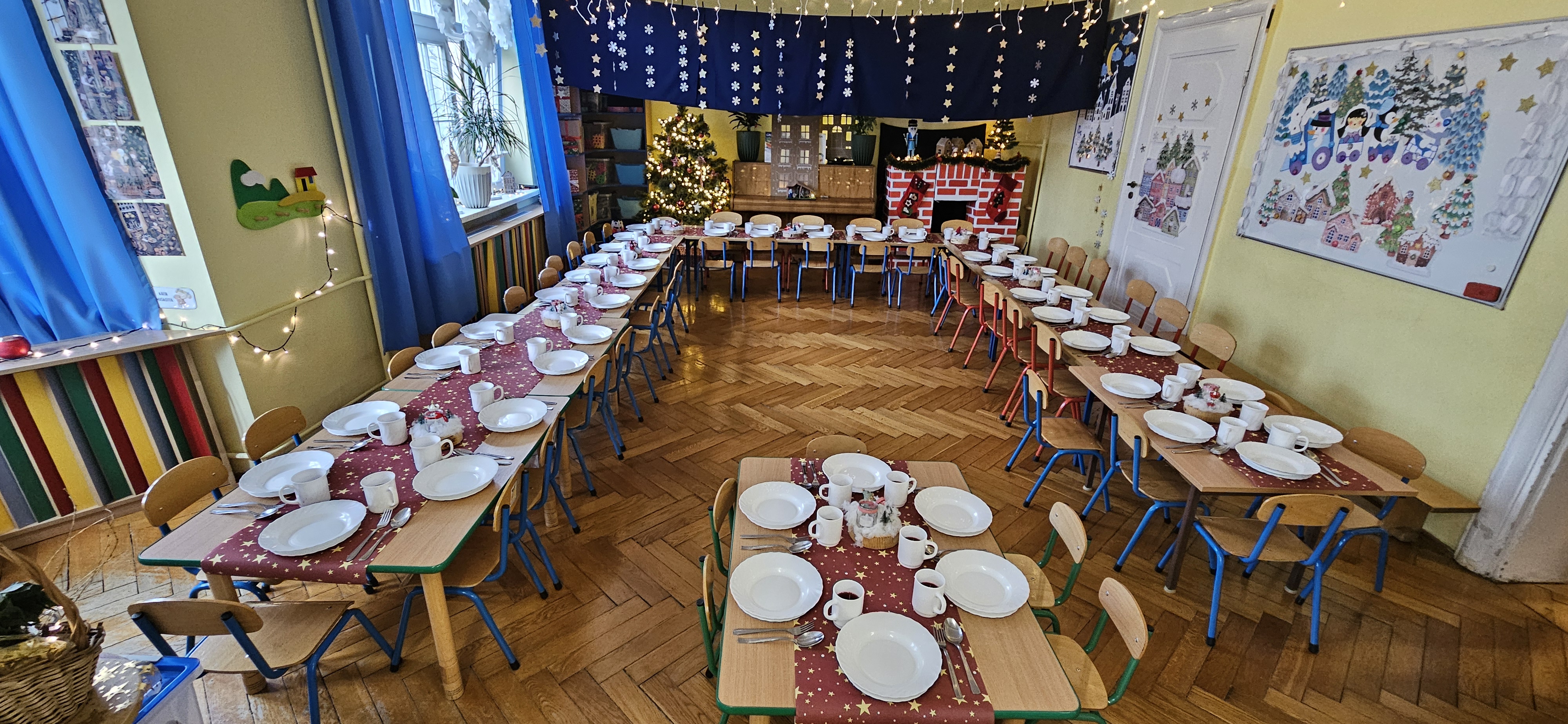 Jak co roku, przedszkolną tradyjcą jest zasiadanie do wspólnego stołu wigilijnego. Wszyscy pracownicy naszego przedszkola oraz nasze przedszkolaki celebrujemy wspólnie ten magiczny, świąteczny czas :)